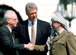 1993年には歴史的な転機が訪れます。ノルウェーで秘密裏に進められた交渉を経て、イスラエルのラビン首相とPLOのアラファト議長が「オスロ合意」に署名しました。合意では、イスラエルが占領地の一部から撤退し、パレスチナ人に自治を認めること、PLOはイスラエルを承認することが取り決められました。両者がホワイトハウスの庭で握手する姿は世界中に報道され、「ついに和平が実現する」と期待されました。