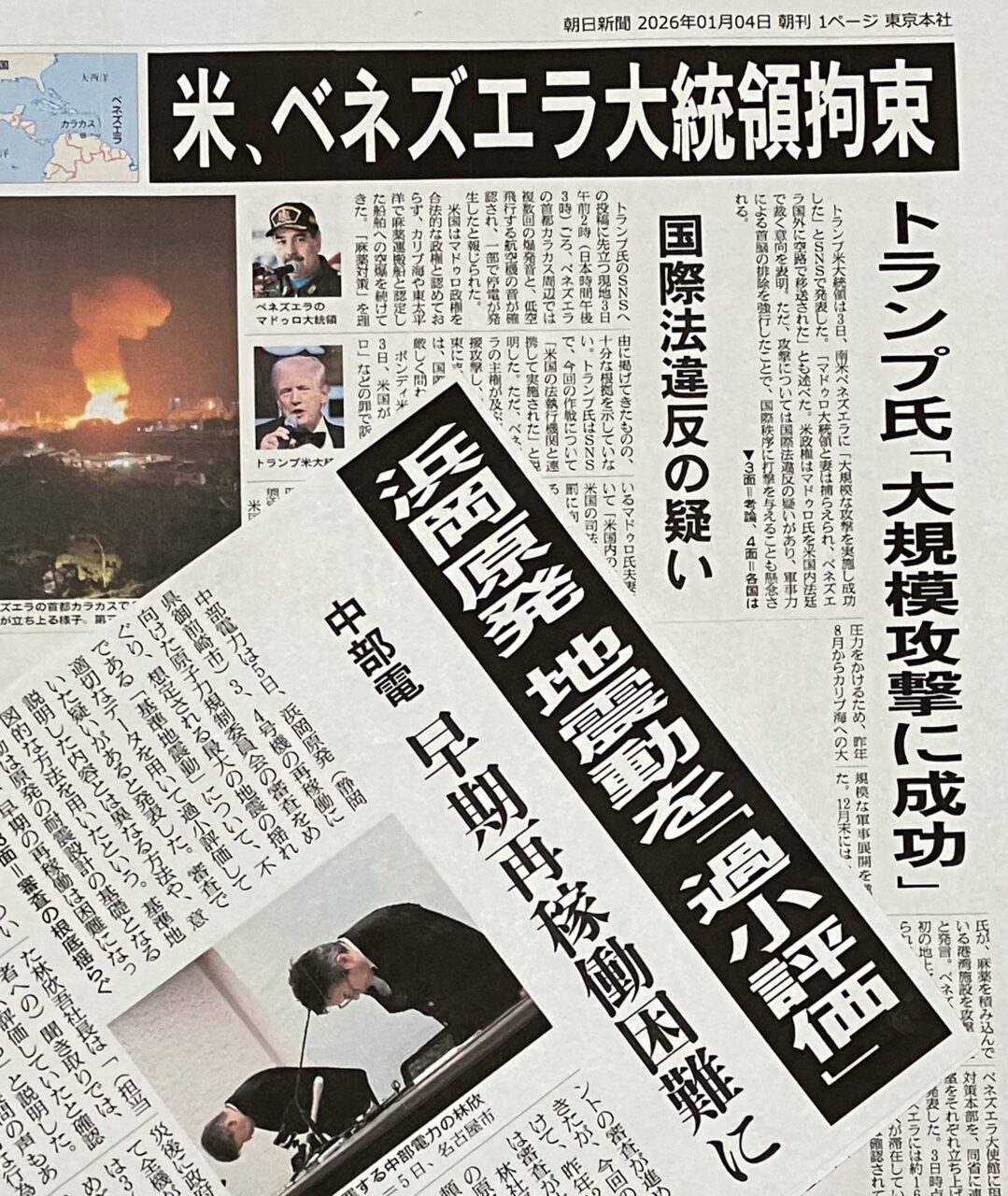 ◎ベネズエラ暫定大統領、米国に協力意向 「戦争ではなく平和と対話」 : 読売新聞 →ベネズエラの暫定大統領が米国に協力する意向を示した。当初は抵抗していたが、「トランプ大統領、私たちは戦争ではなく、平和と対話に値する」と呼びかけた。米側もマドゥーロ大統領派の影響力を重視したようだ。当面の大混乱は避けられそうだが、最重要の国民生活はどうなるか。米国で裁判が始まったが、大統領は起訴内容をすべて否認した→ ベネズエラ マドゥーロ大統領 米連邦地裁で起訴内容すべて否認 | NHKニュース